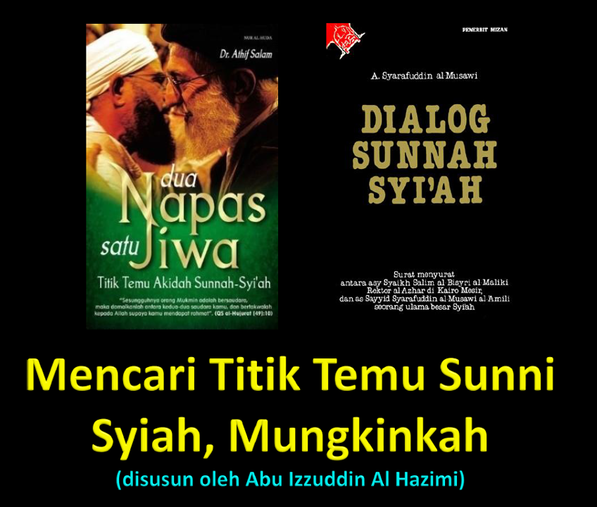 Berikut link download materi kajian dengan tema "Mencari Titik Temu Sunni Syiah, Mungkinkah" MENCARI TITIK TEMU SUNNI SYIAH, MUNGKINKAH Tulisan ini menjelaskan tentang aqidah Syiah Imamiyyah Itsna Asyariyyah berdasarkan sumber-sumber yang menurut Syiah Imamiyyah sendiri adalah sumber yang sangat valid dan dijamin keshahihannya, bahkan melebihi keshahihan kitab hadits Shaih Bukhari dan Shahih Muslim. Semoga