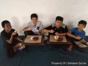 Selain uang tunai 1,5 juta, ananda Bagas juga mendapatkan satu ekor kambing. Kambing tersebut kemudian disembelih dan dimakan bersama-sama para santri lainnya.