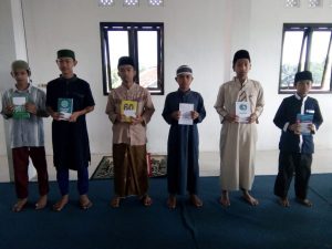Para santri yang berprestasi mendapatkan sejumlah kitab dan uang jajan.