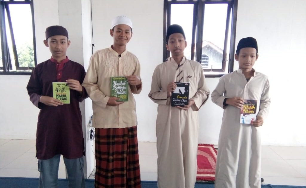 Para santri yang berprestasi mendapatkan sejumlah kitab dan uang jajan.